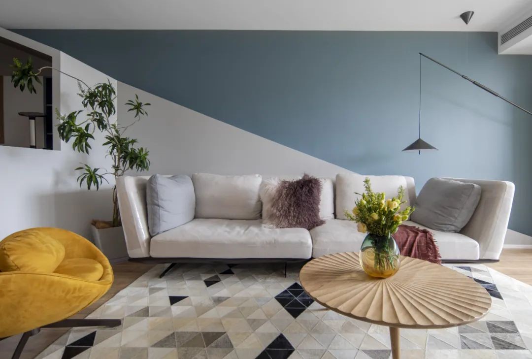 沙发侧面的绿植,平衡了空间的视觉,借由阳光浸入,与茶几的阴翳纹路相衬,独坐,或与家人朋友闲聊,空间尺度合理纯粹、惬意和谐。