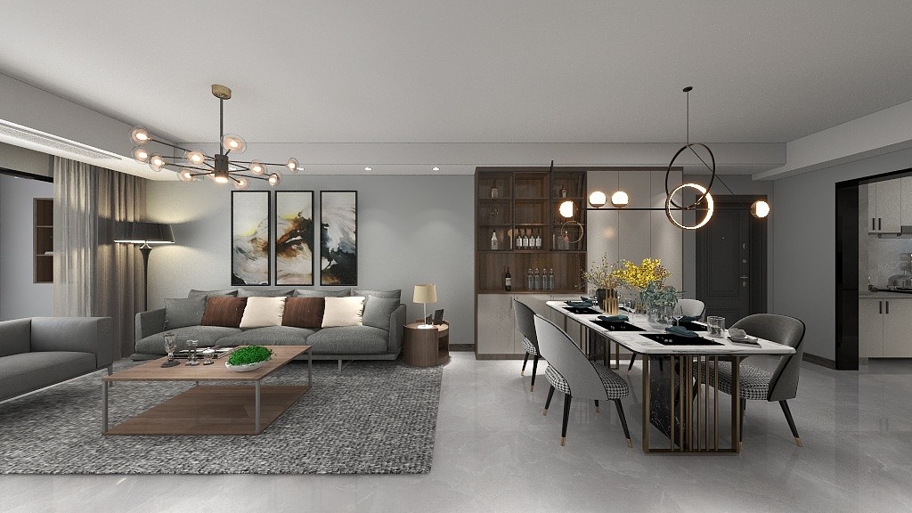 客餐厅在一个空间,分为两个区域吊顶没有整体规划一个吊顶更舒服