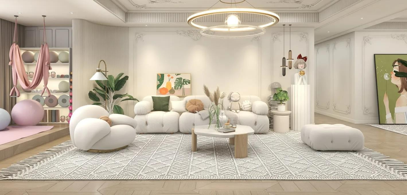 通过减少过多的家具摆放 与大面留白的墙面设计来营造出轻松且自在的休息氛围 再结合房间内布满的白色系软装饰品,深色是沉稳与安全感 浅色则又充盈着对生活的温情以及内心的柔软和浪漫 让简约大方的气质呈现也能使空间整体感更加舒适放松