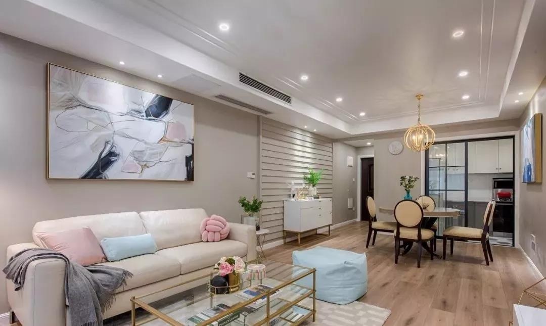本案是一套面积为105平米的小清新风格家装案例,因为空间中加入的一抹粉色装饰,整个空间也变得充满少女感,粉嫩中也不失大气。