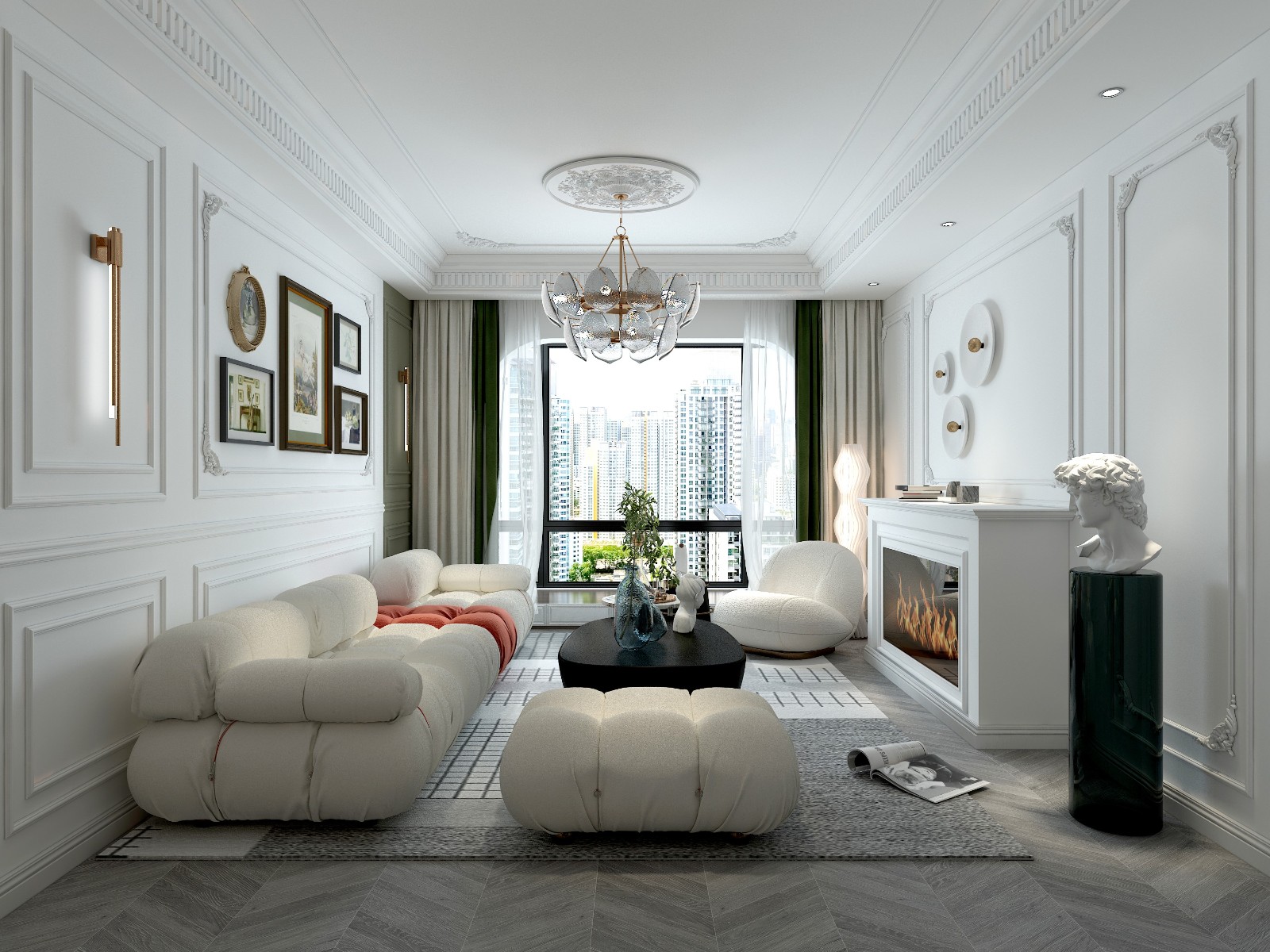 大面积运用石膏线条及雕花,深度还原法式风情