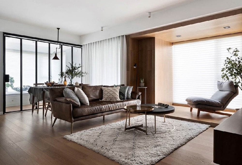原始结构的东面阳台过大,而客厅开间有限。于是我们把靠客厅的一半阳台纳入到客厅的面积,这样在同时保留功能阳台的情况下,客厅的面积做到舒适度很高。