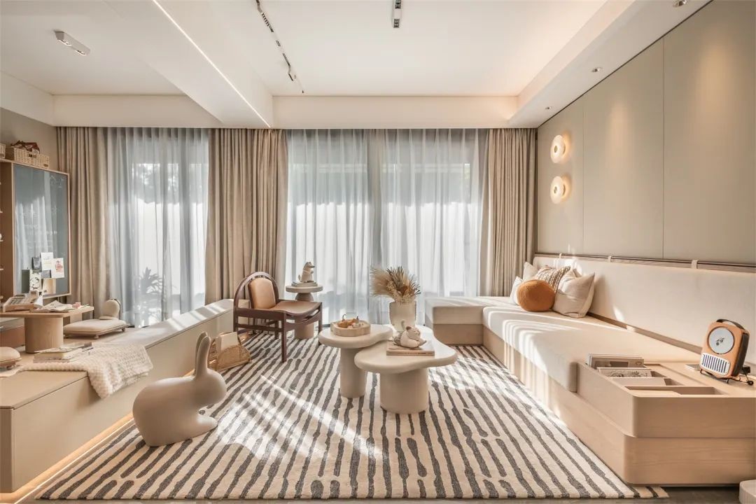 本案注重空间多元性和主题化场景的打造,以材料工艺和人性化设计 ,为居者打造一个以舒适感为前提,兼具功能和生活品质感的居住空 间,助力生活焕新。剔除生活中的“繁复”,让真正的自我清晰起来。温 润质感的饰面铺垫出细腻的感受,给予内心深处一份平静与安宁 每一处细微的考量,都是设计的匠心落笔。精致的装饰物与空间场域完 美融洽。