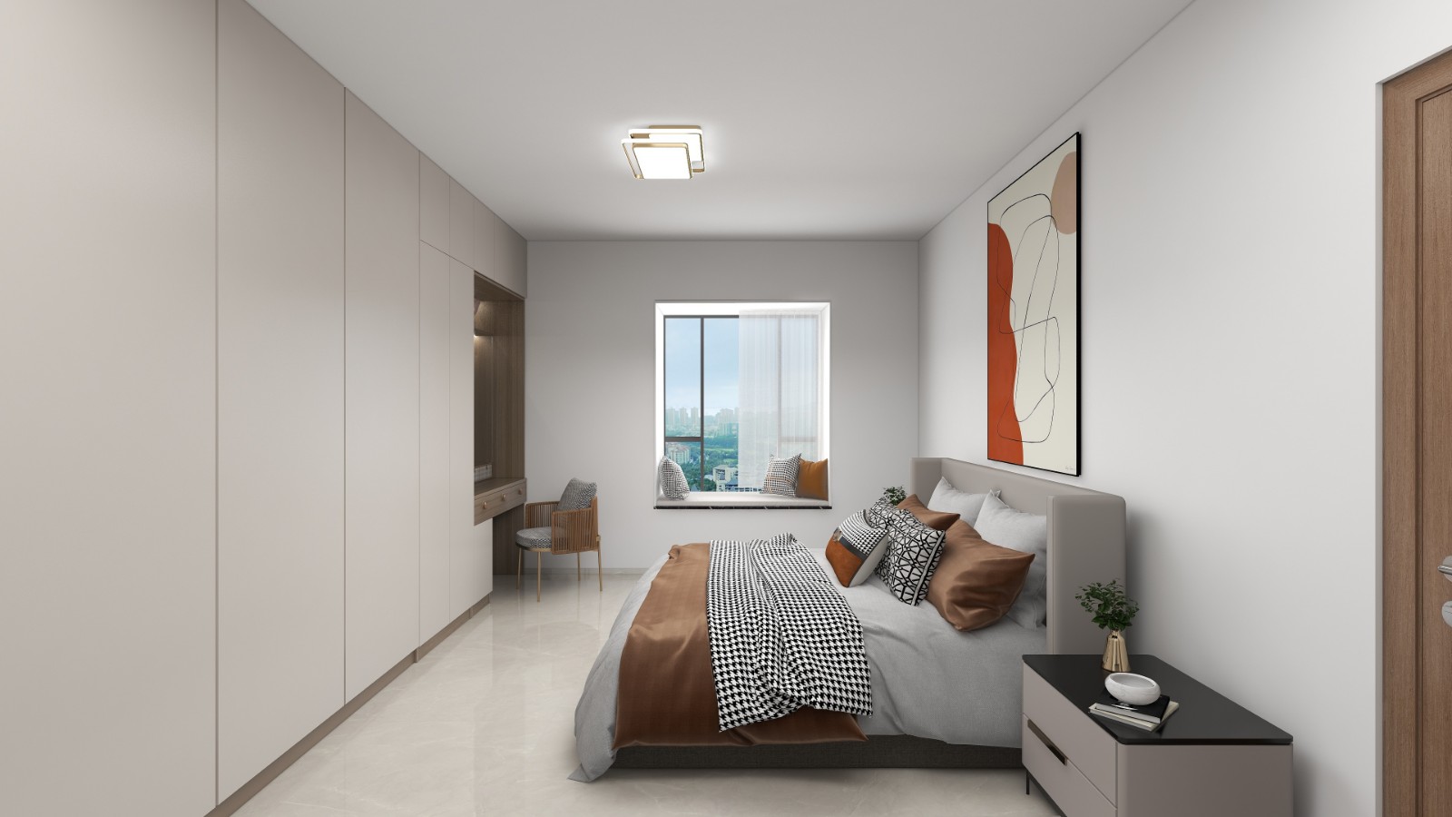 主卧室采用隐形柜设计,效果图