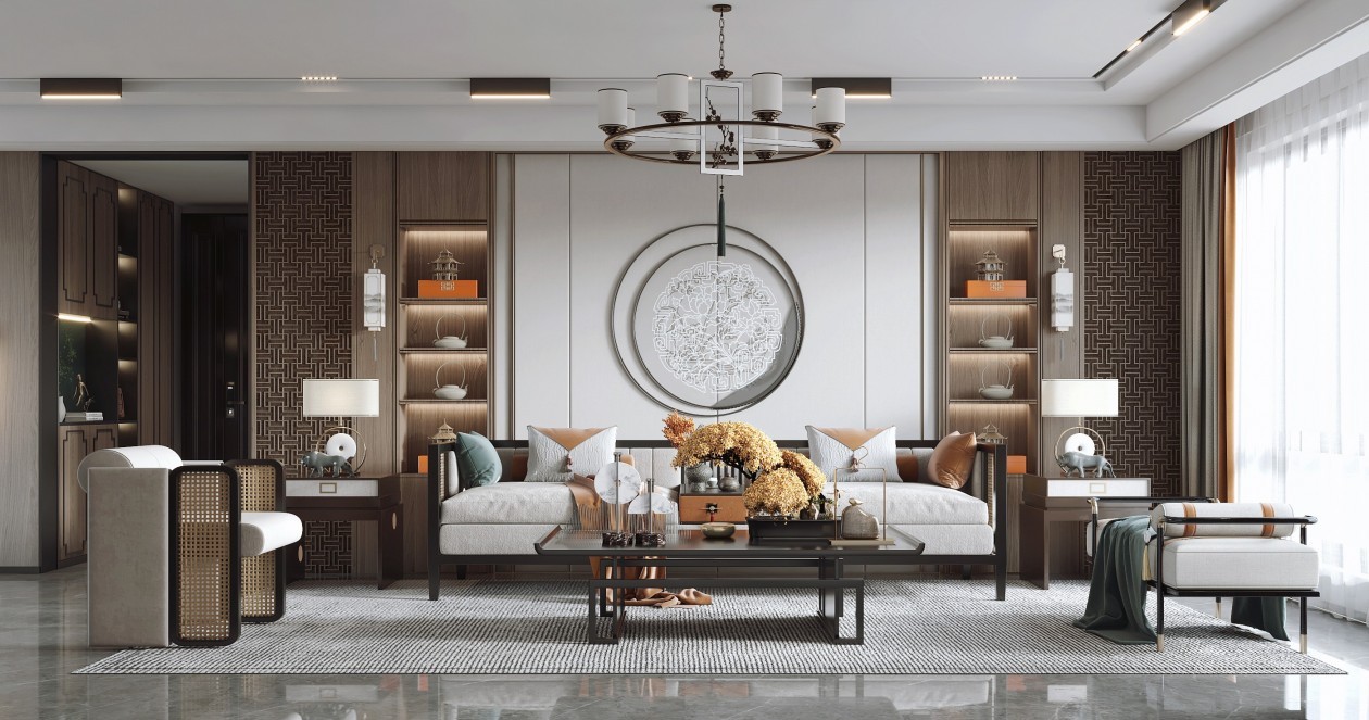 客厅背景做的硬包与定制柜子结合形成一个整体
