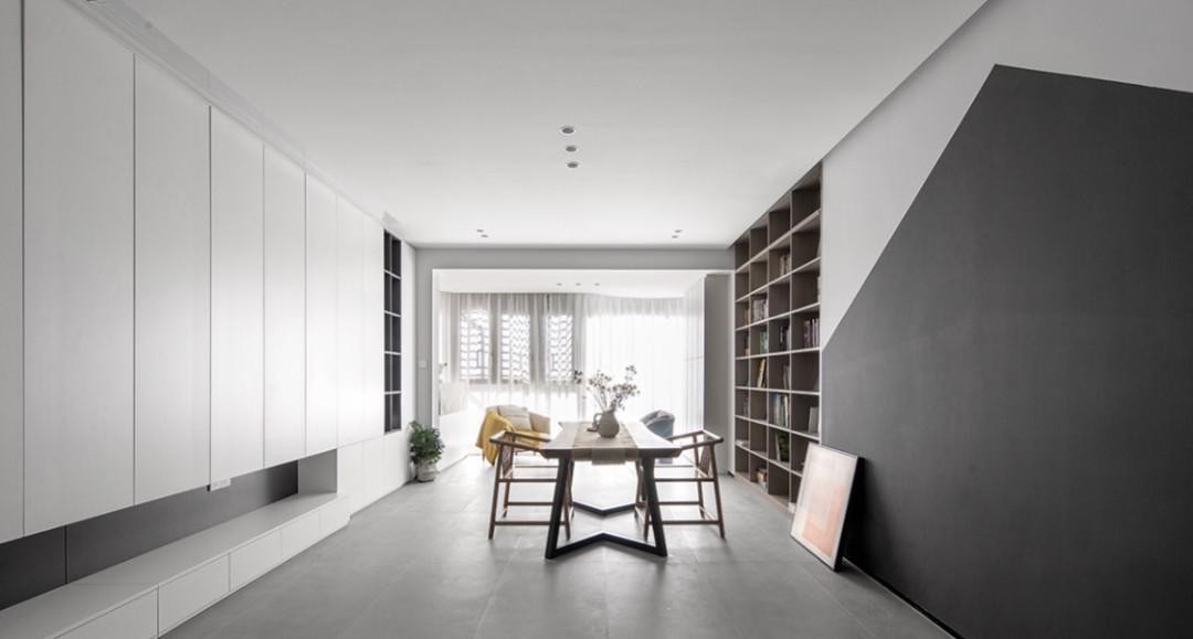 与客厅的书墙形成两个空间的视觉互动,独立成景,又移步易景,充满生活趣味性。
