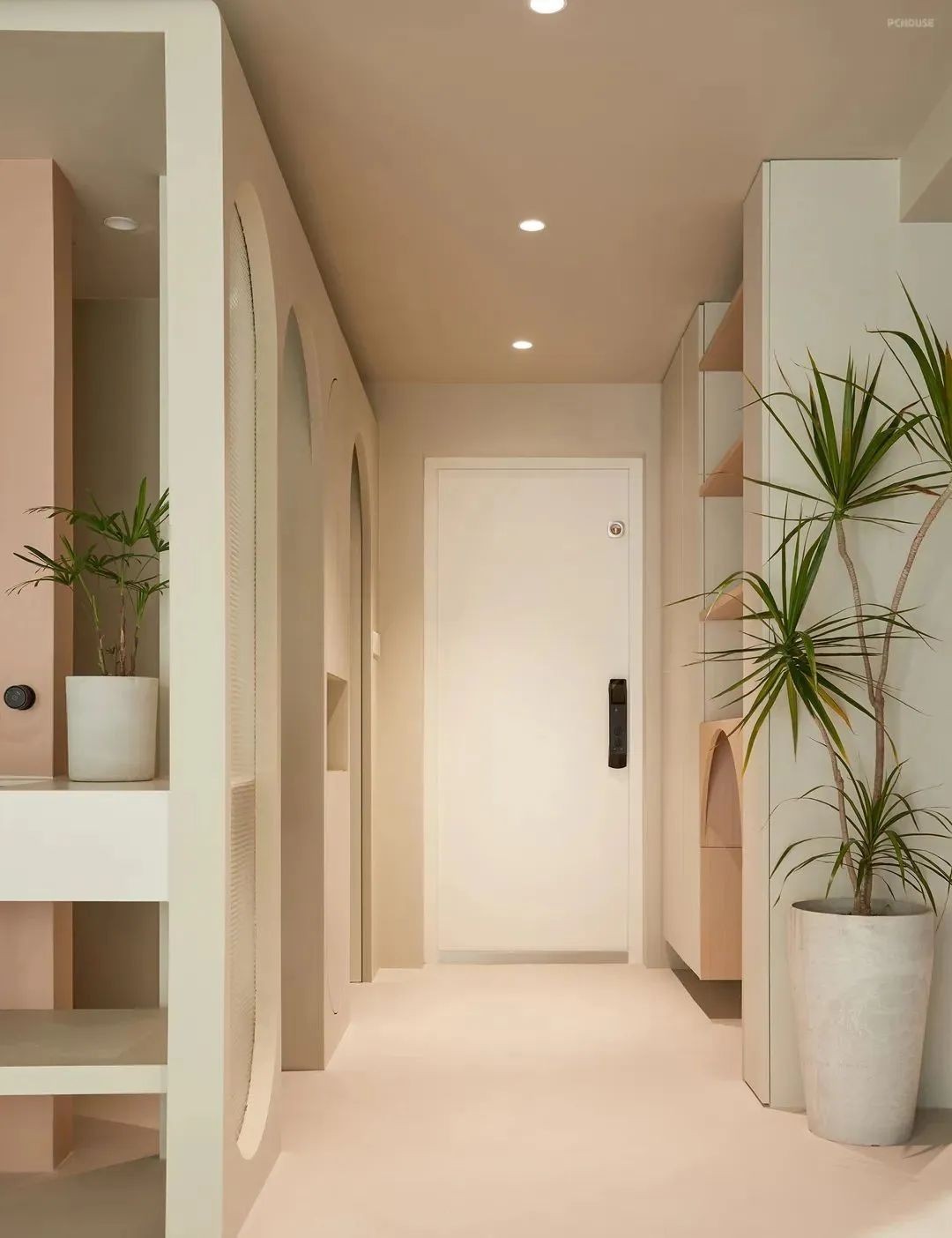 图片 玄关处左右两侧设有进深600mm和300mm两个尺寸柜体,用来分别收纳衣服和鞋子。