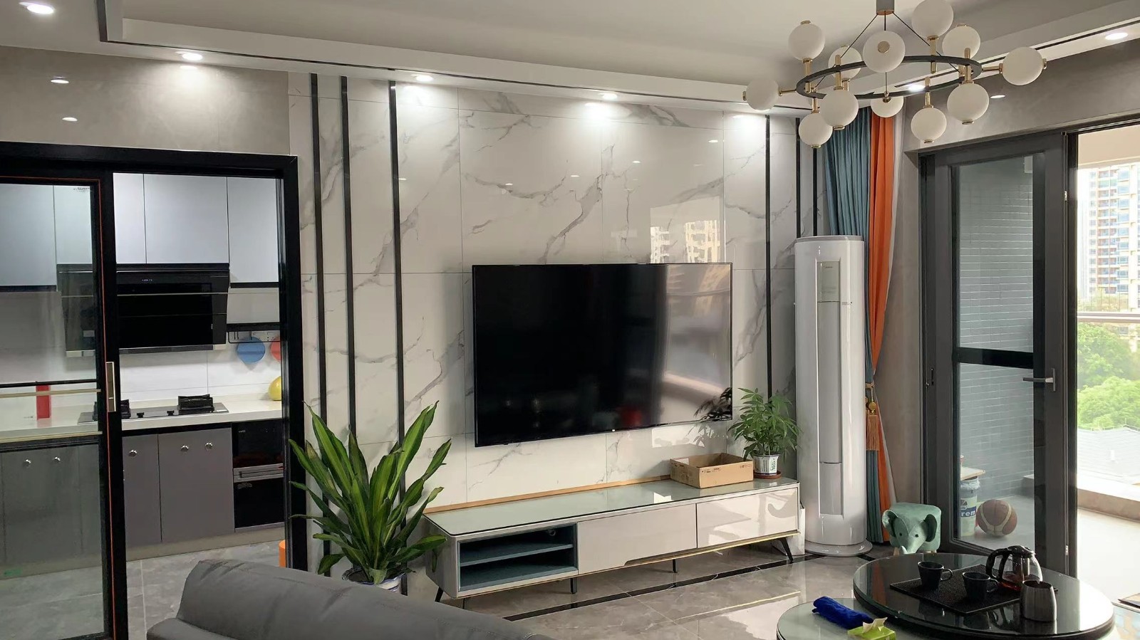 硬装瓷砖上墙 天花客餐厅分区采用灯槽走边做造型。