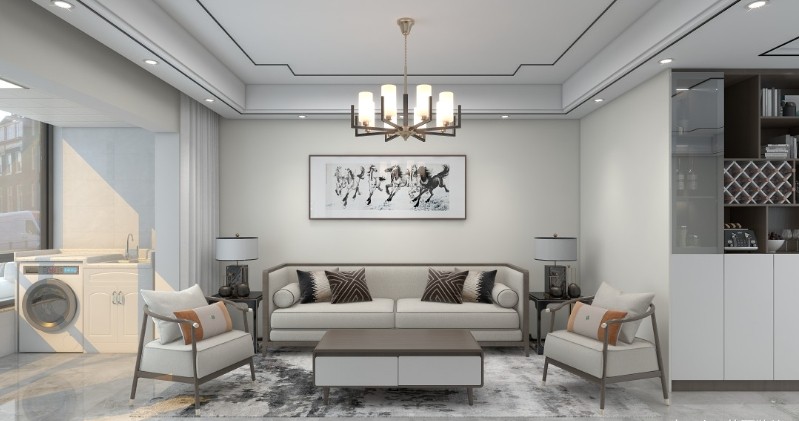 客厅沙发面主要采用中式对称的手法去美化