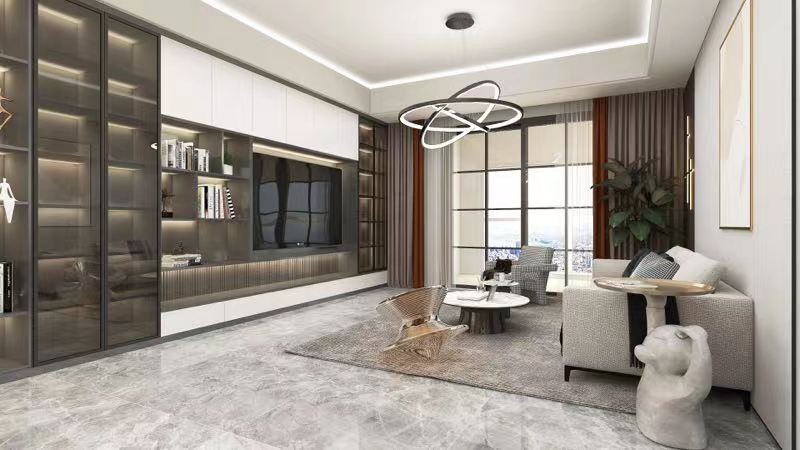 透明的玻璃柜门,延伸空间感,设计感的灯光,照亮幸福,色彩呼应合理。