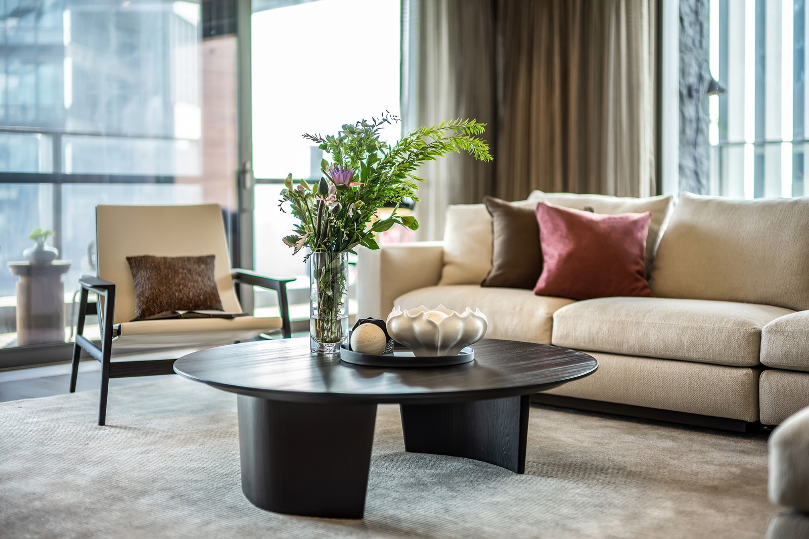 设计师以亚麻与木色这样低饱和度的色系,打造出简雅柔和的空间韵调,为日后的生活场景留足想象与施展的余地。