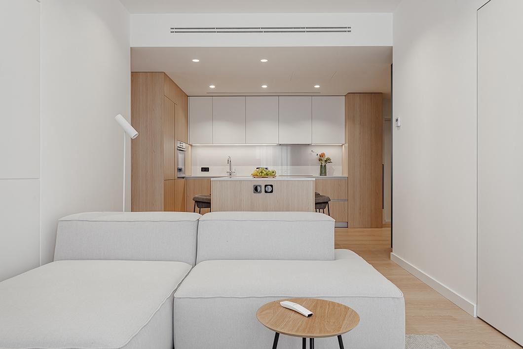 极简主义(Minimalist Art)兴起于20世纪60年代,是西方现代艺术重要的倾向和流派之一。20世纪70年代,西方室内设计开始走上了简约风的道路。本案业主非常注重环保,孩子上学需要装好就住进去,所以杭州亚运会官方指定涂料品牌嘉宝莉涂料,选用了通过双重检测认可的搞笑净化甲醛的竹炭净醛5合一墙面漆,这款漆通过了中国双十环认证,符合法国室内环境监测A+标准,符合低释放室内空气监测A+标注准,拥有