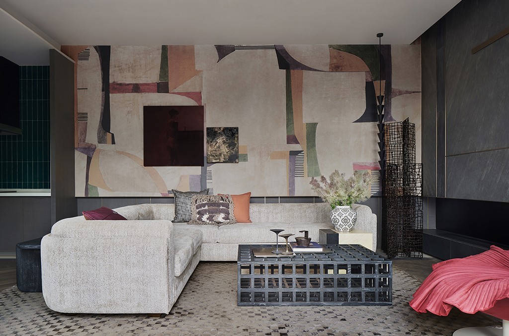 设计师将别开生趣的、简约抽象的几何元素装点在空间中,别出心裁的家具与饰物,既有复古感,又不乏时尚性。