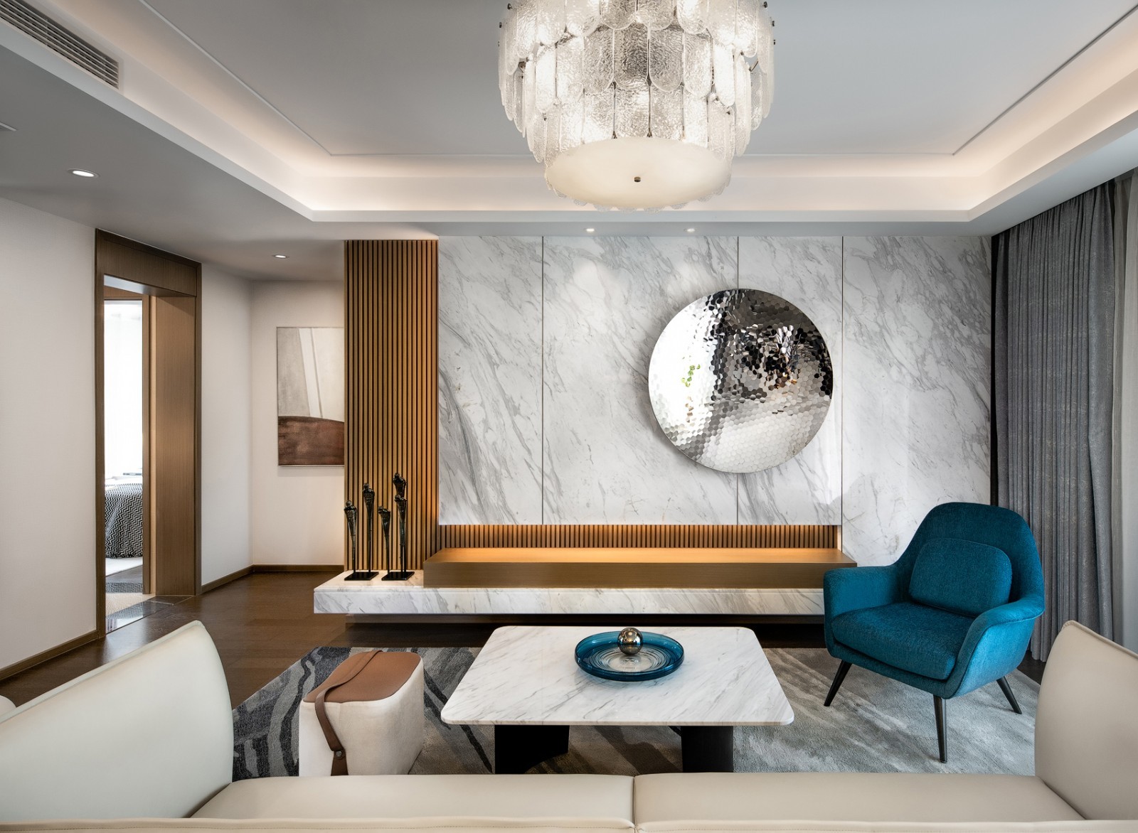 在重要区域节点营造重点空间,让空间层次显得主次有别,结合空间区划和软装陈设,让人体验其中的时候有一种“悠然见南山”的闲适之感。
