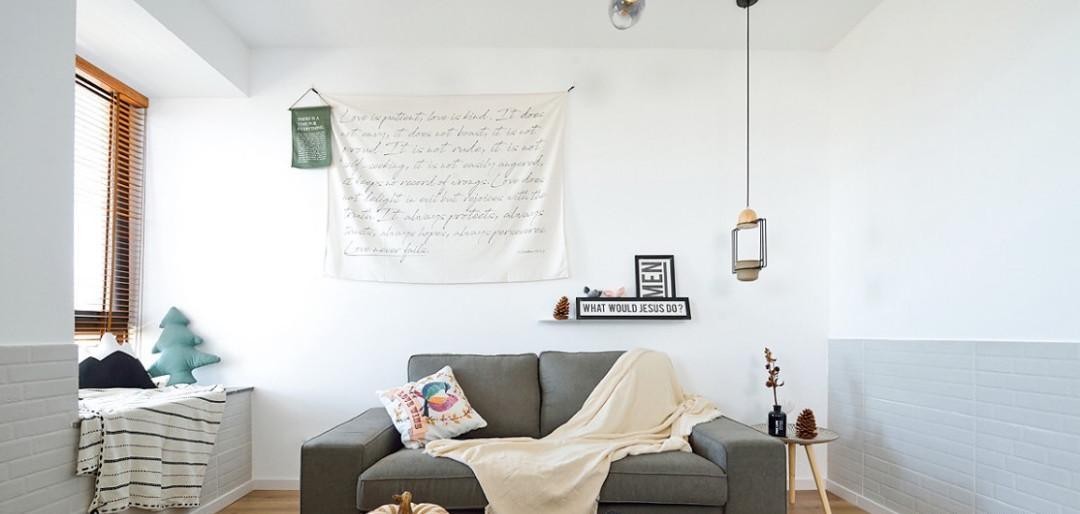 客厅的整体色调以素雅的白色为主,硬装主要采用偏自然系的地板,增加了空间的扩张感。