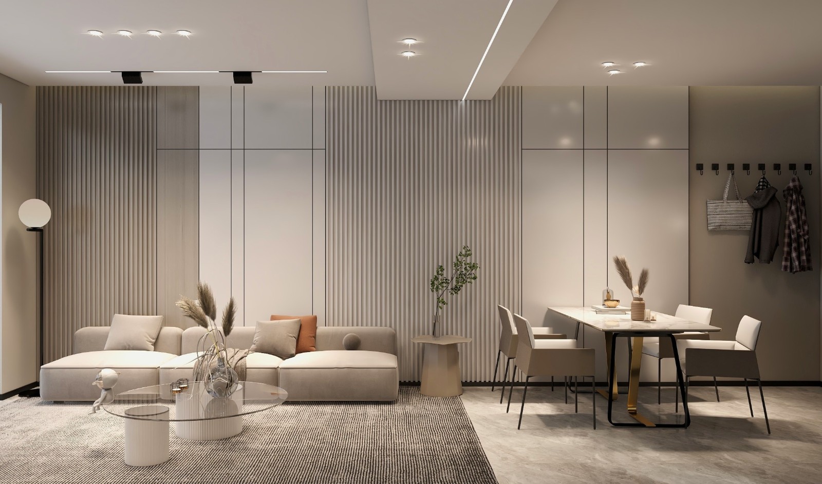 背景墙方面与吊顶交相辉映,没有必要做到门口一侧,通过需求可做挂衣钩,避免大衣外套没地方安置