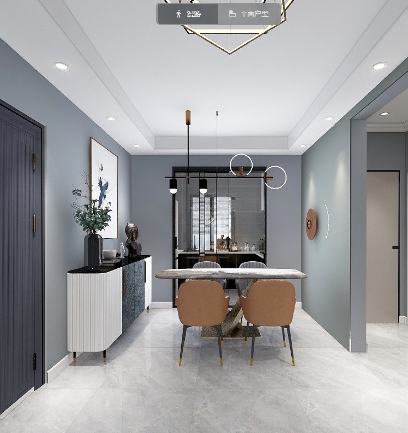 此工程装饰为两房一厅 建筑面积96平方米 户主为2口之家 现代简约风格