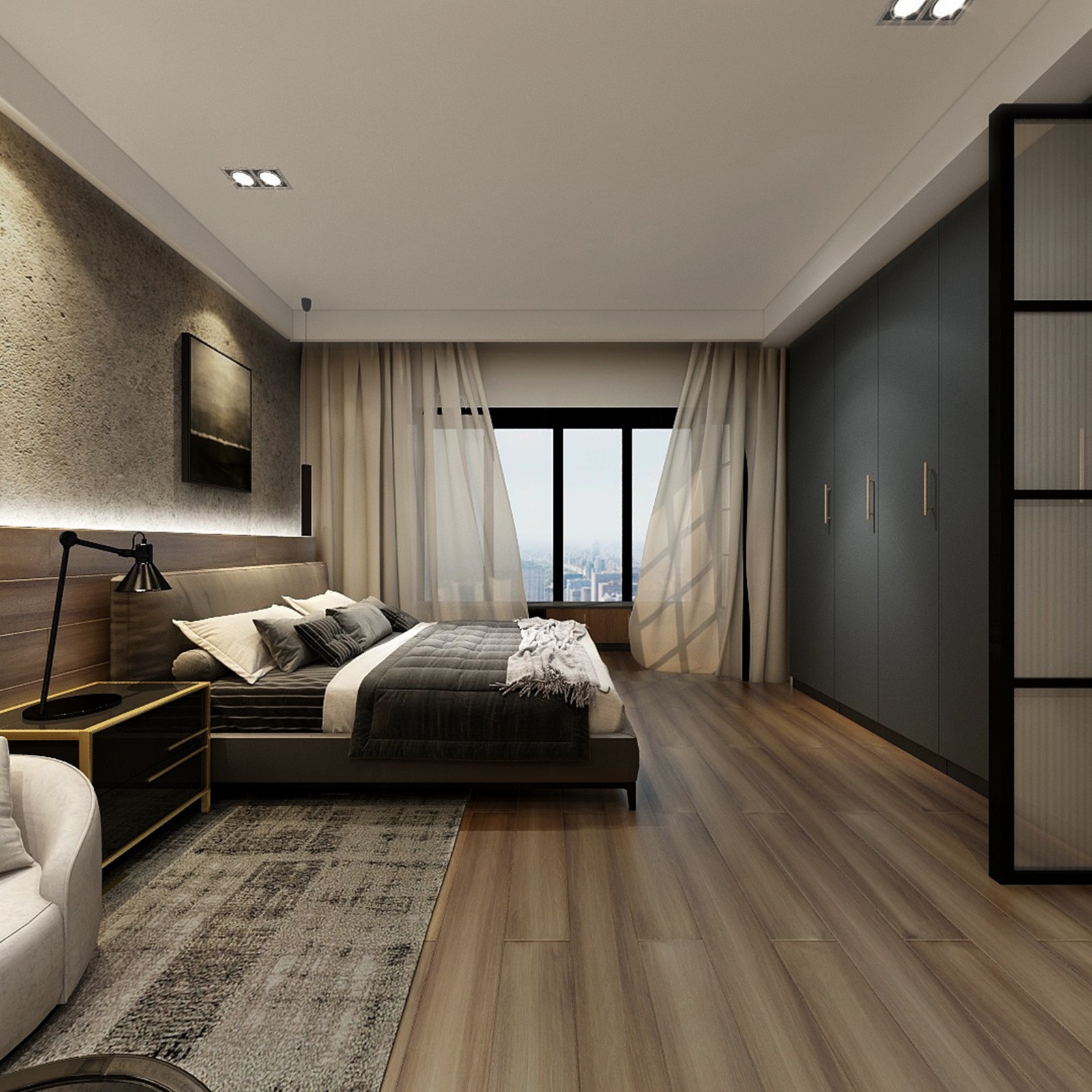 该位置的展示是整个户型中的休息区域整个中间会有一个推拉门隔开