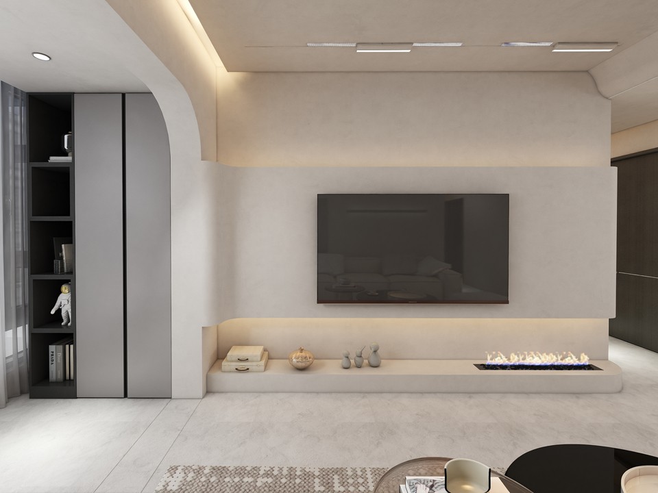 微水泥极简电视背景墙