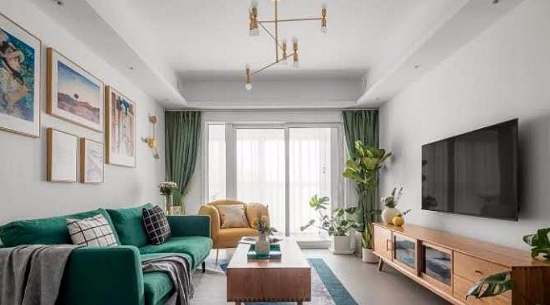 牛油果色的背景墙,搭配绿色植物挂画,再加入原木家具、棉麻质感的床品,随时给疲惫的身体一个温暖的拥抱