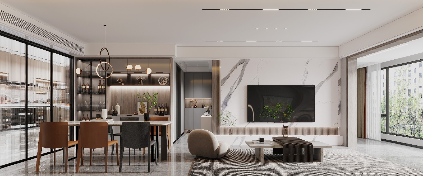 简约的吊顶结合有亮点的家具,让整个空间更加敞亮