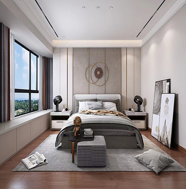 120m的户型,金属感的线条,与窗外的万里山河的美好风光形成对比。白色的家具和床品,典型的现代简约风格代表。一盏灯笼吊灯,暖暖的光晕染开来。窗外的阳光透进来,斑驳陆离。
