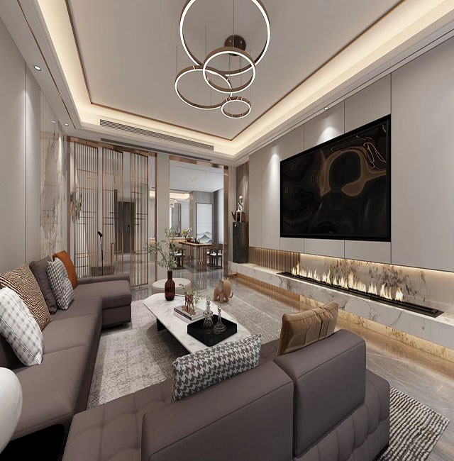 150平方的大平层,现代简约设计的风格,以黑白灰的色调为主,在金属条的装饰下使整个变得更加明亮舒适。
