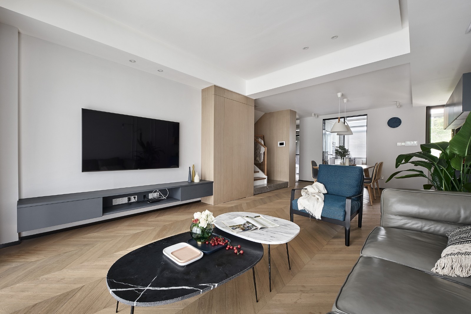 整个空间以白色为主点缀原木色,全屋地板鱼骨拼,清新自然地感觉扑面而来。