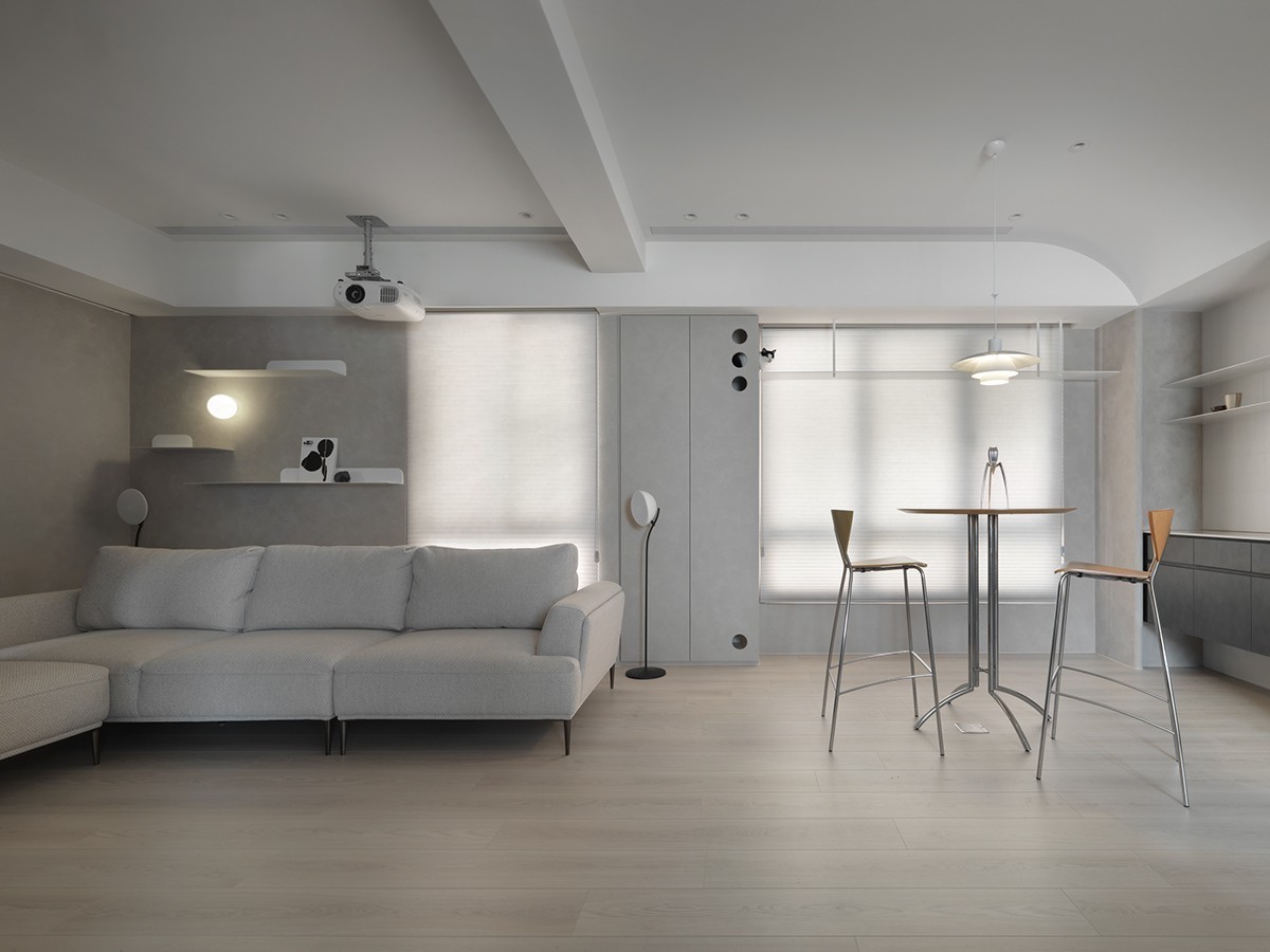 。以渐变的概念安排了介质般的场域,做为不同空间性质的过度,让家能有最轻松舒适的生活节奏与尺度。
