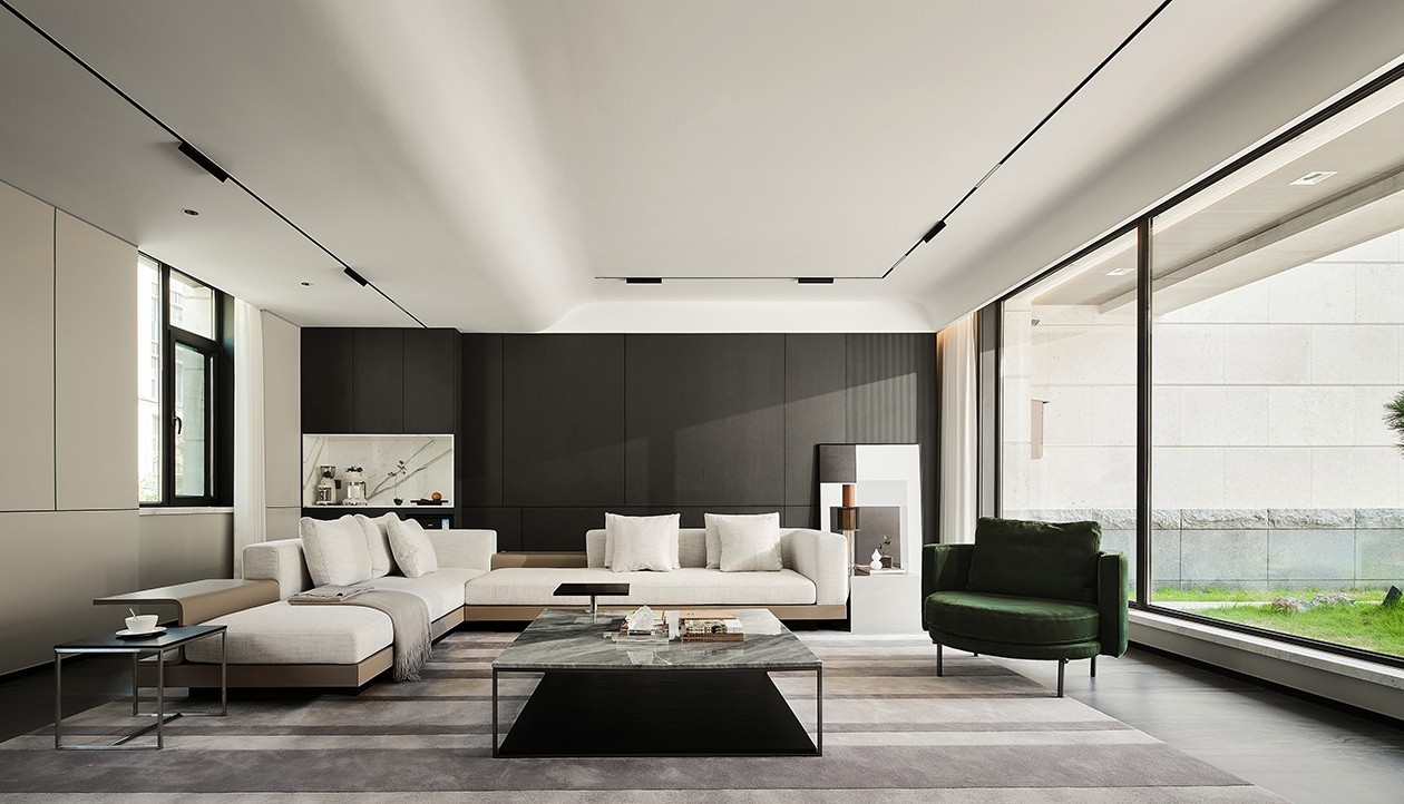客厅结合室外自然景色,同时灯光层层递进,加强期待感,开启视觉延展。