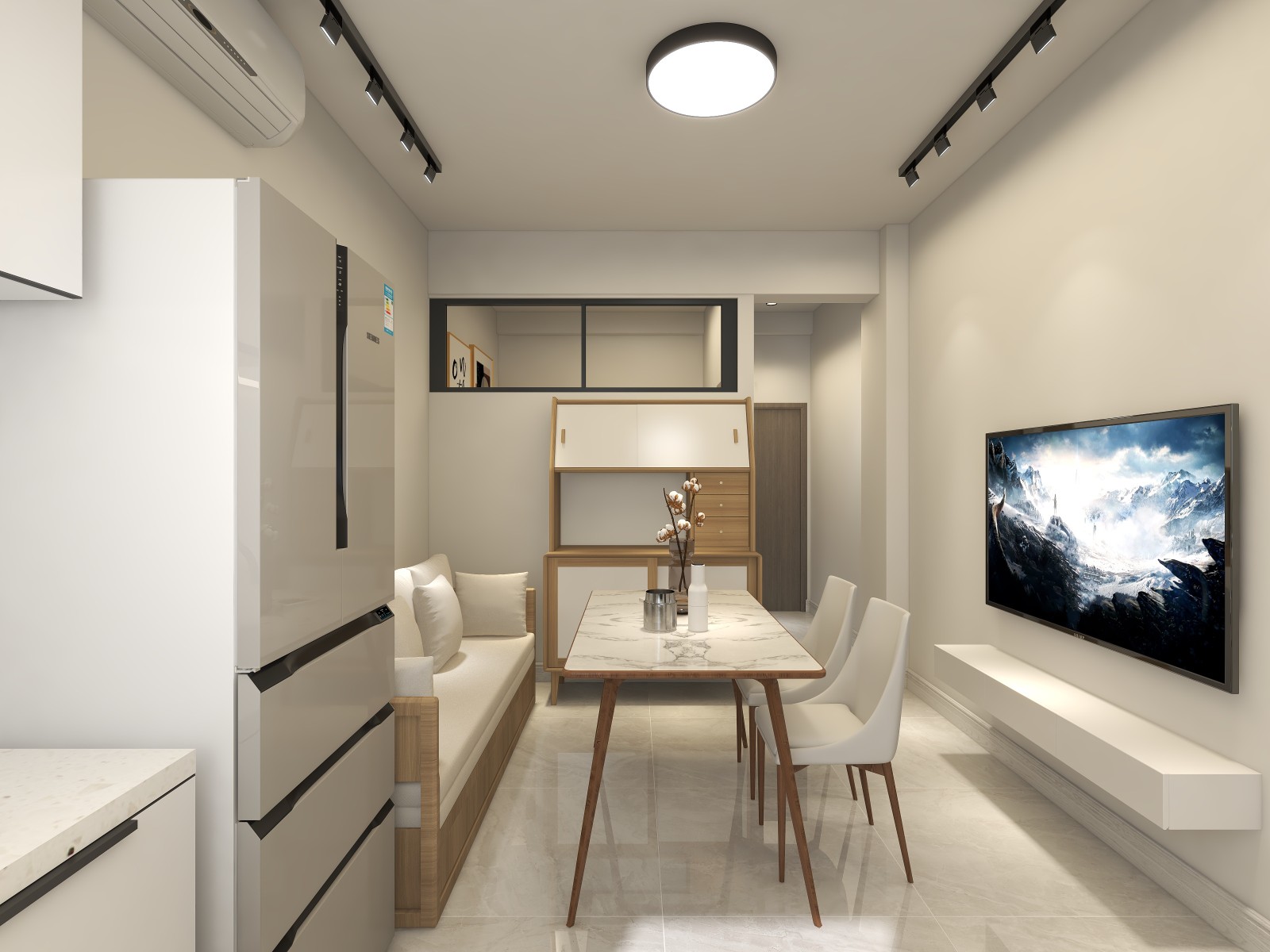 空间有限,采用开放式厨房设计,让空间利用率更高
