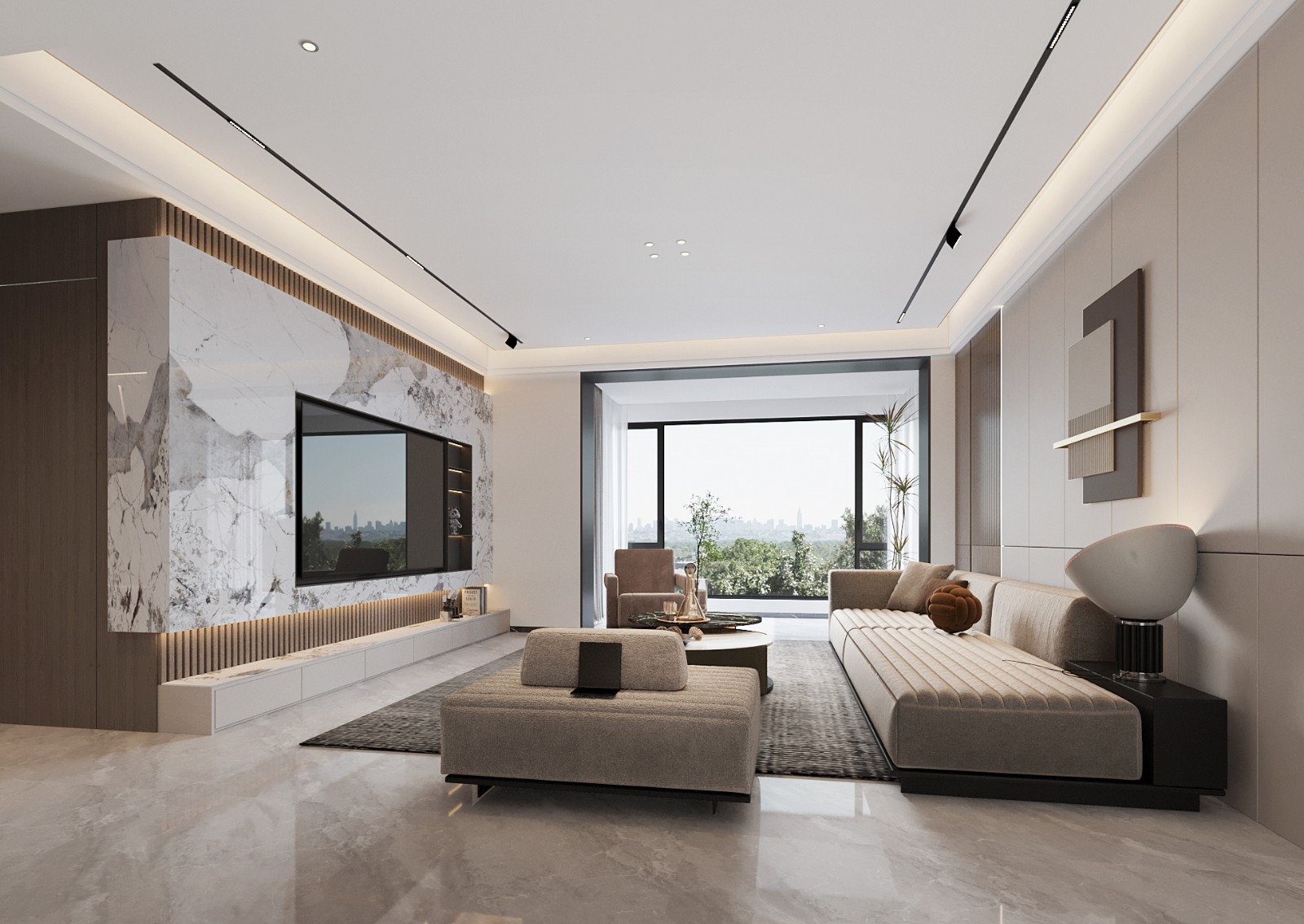 轻奢、优雅,光在空间中交织,大地色系与金属质感交融出现代轻奢的高雅品位