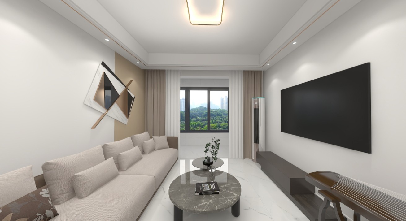 整体是现代简约的风格,简单刷一个颜色,简单做一个吊顶,墙面整体是一个白色的造型