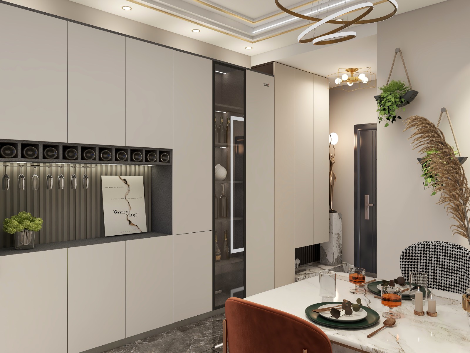 餐厅与客厅同处一个空间,互不干涉,光线充足,无形中扩大了视觉感官。