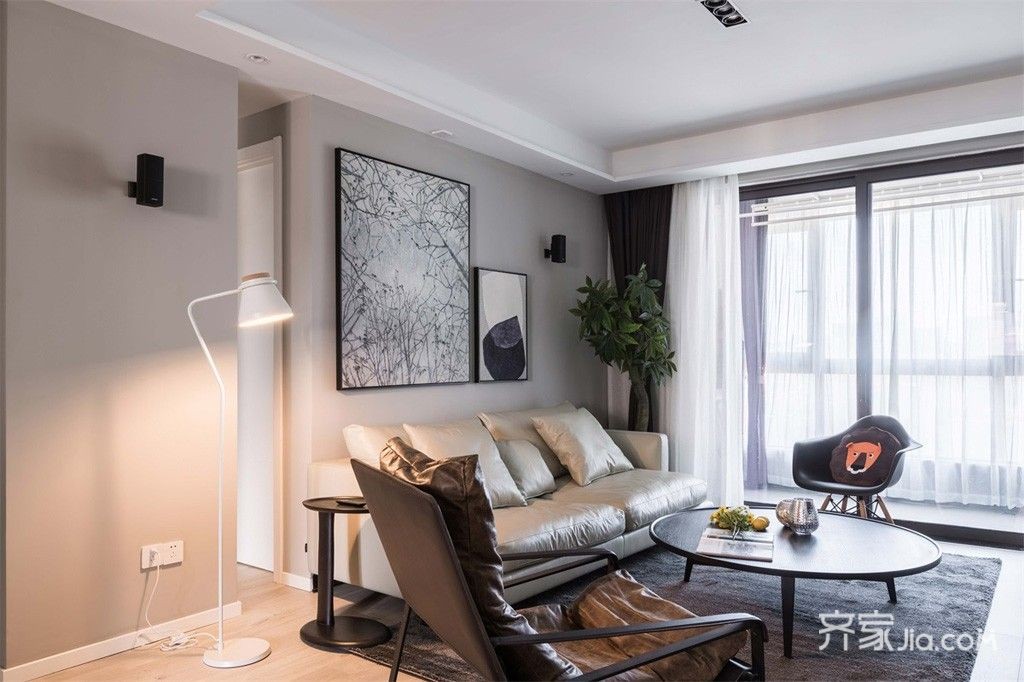 客厅以穿透、轻盈、明亮感为设计重点。墙面使用了白色乳胶漆,奠定了稳重简约的调性。窗明几净,定制的电视柜简洁质感,视觉上拉长了房间进深