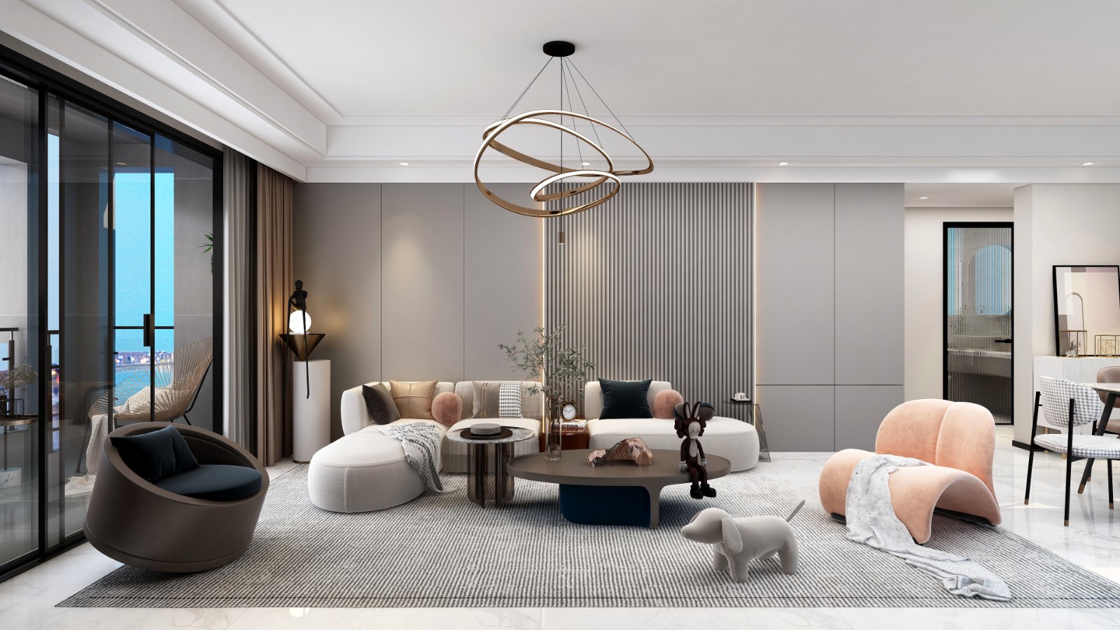 在家具与装饰品的选择上做到精简又克制,通过搭配考究的细节,为业主构建了一处简约私密的静观之所