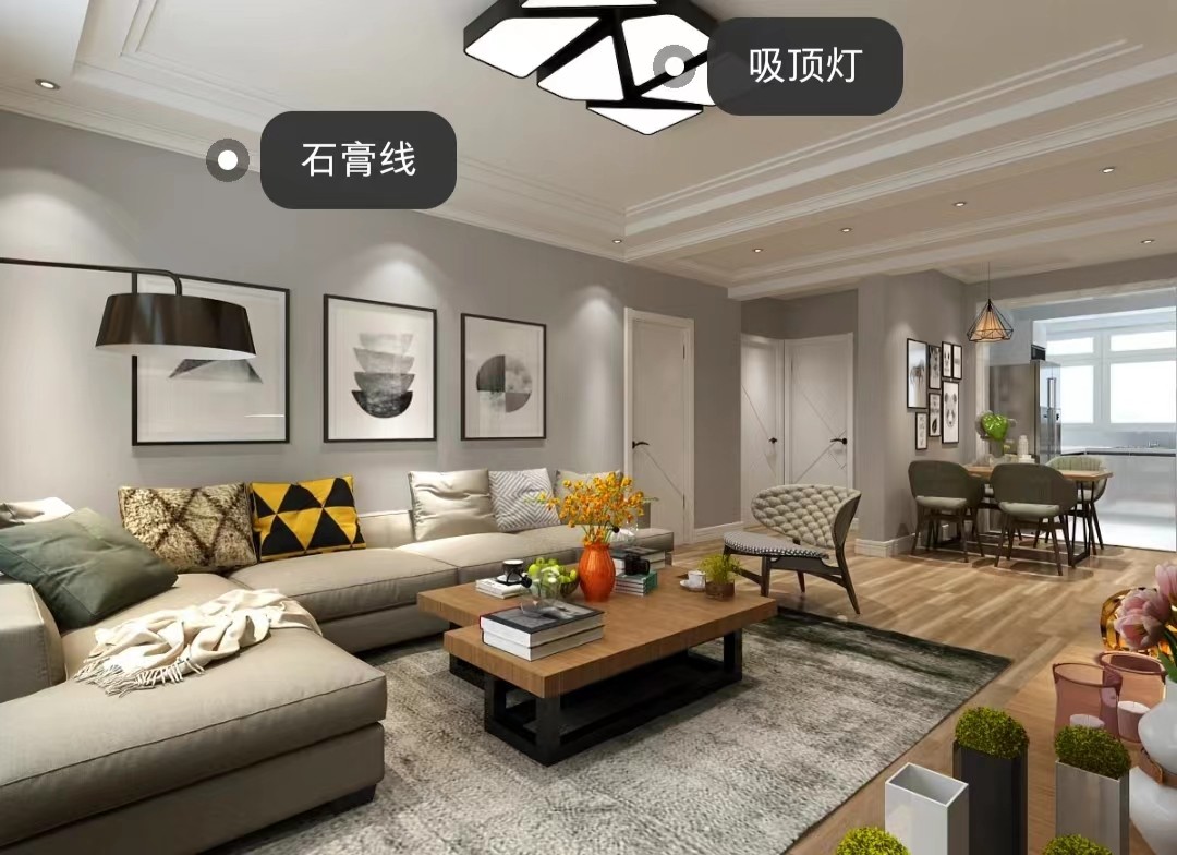 客厅吊顶用的是40公分的边吊,底边圈了一层石膏线