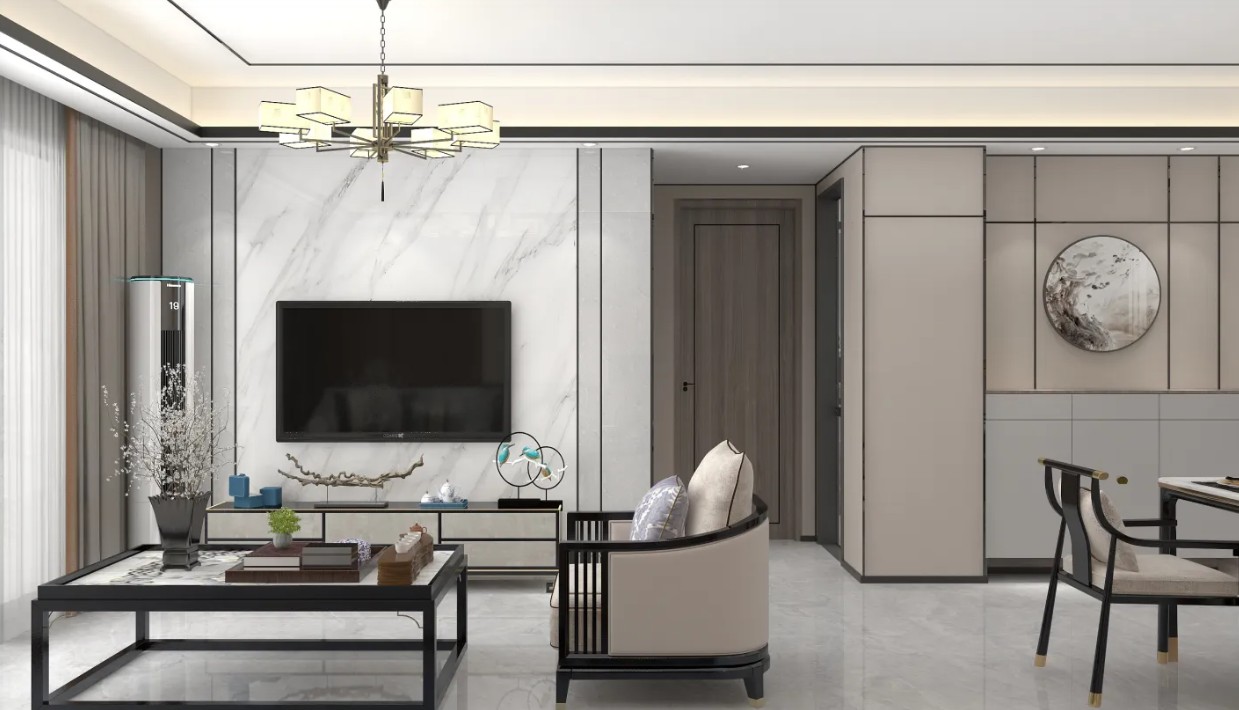 以中式风格为主,搭配集成墙板