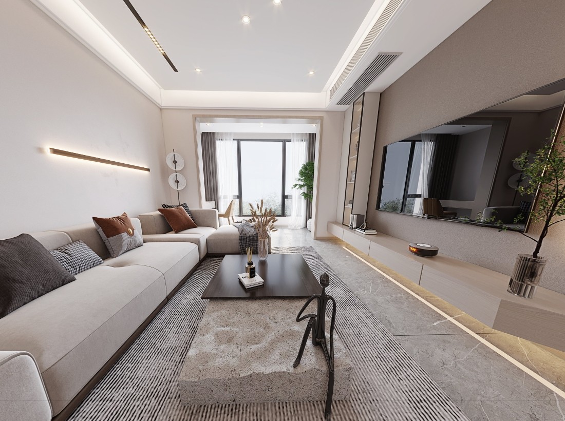客厅采用无主灯设计,整体配色给人温馨感又增加了整体的线条感。