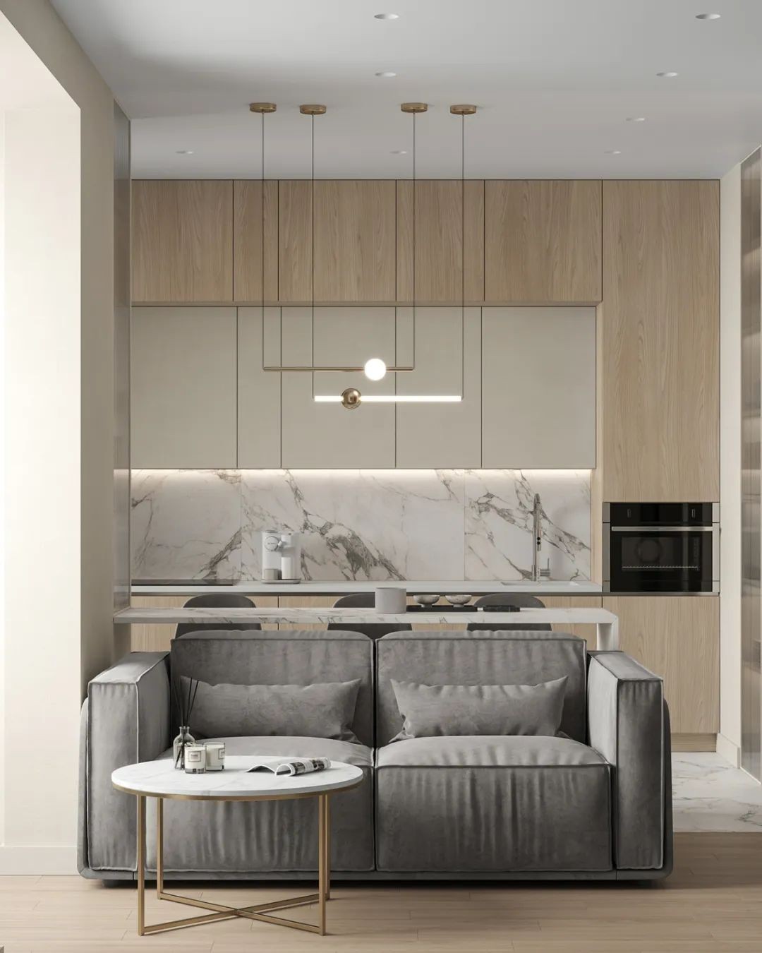柔和的原木色调与奶白,形成了清晰的空间架构