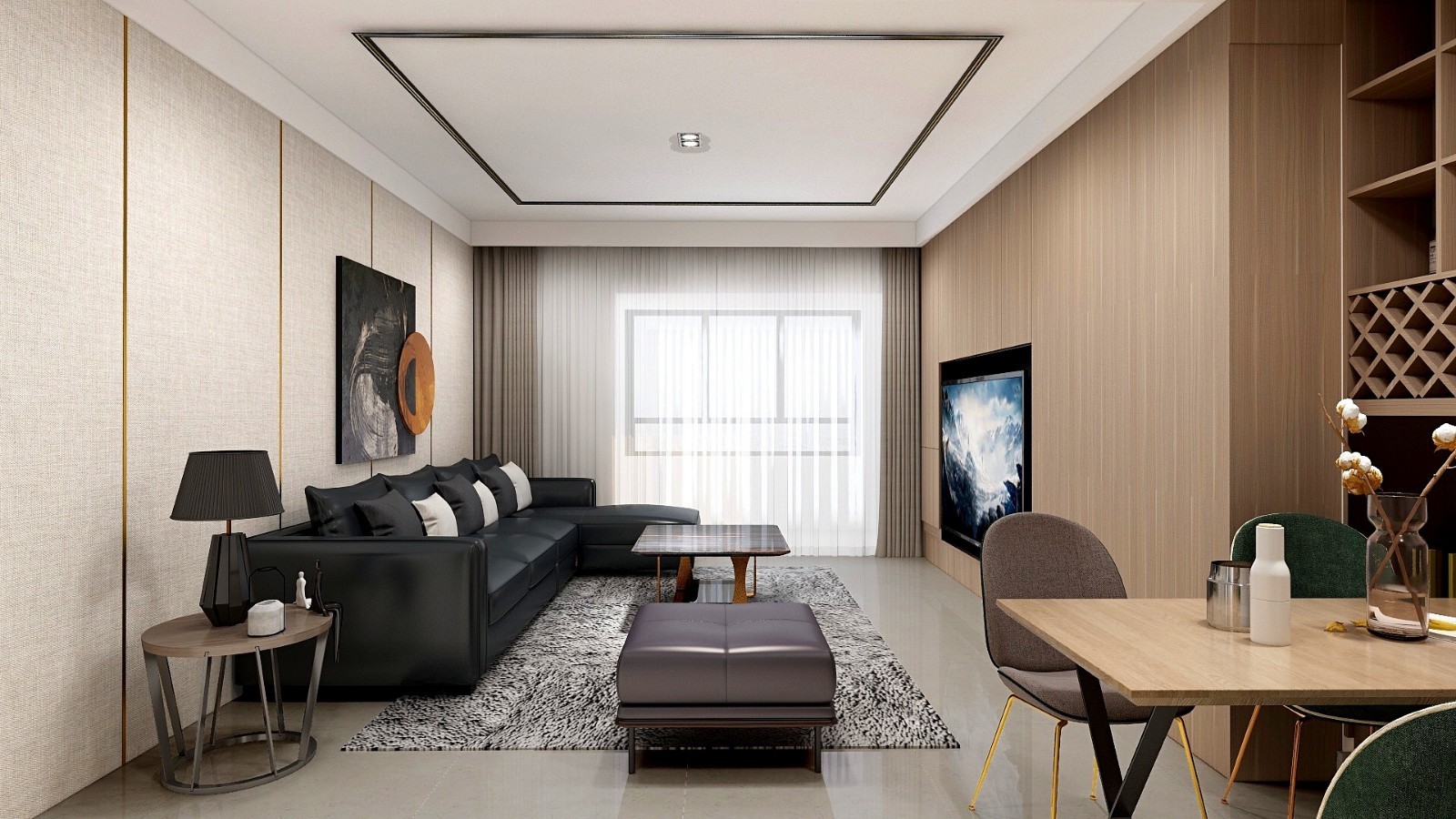 拼接式背景墙将客餐厅做简单划分,硬朗轻盈的线条感凸显出经典与现代的交织感。