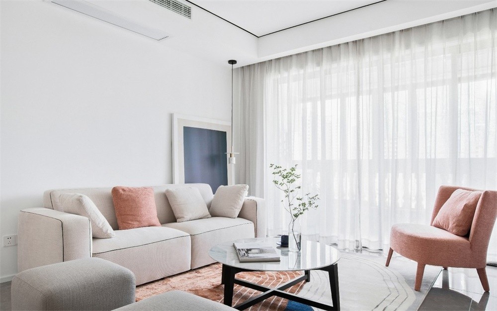 客厅,用白色和橘色系搭配