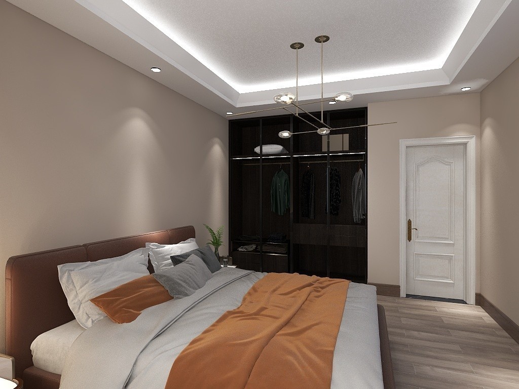 主卧采用最常规也是舒适的布局,卧室是比较私密的空间,不需要鲜艳的色彩