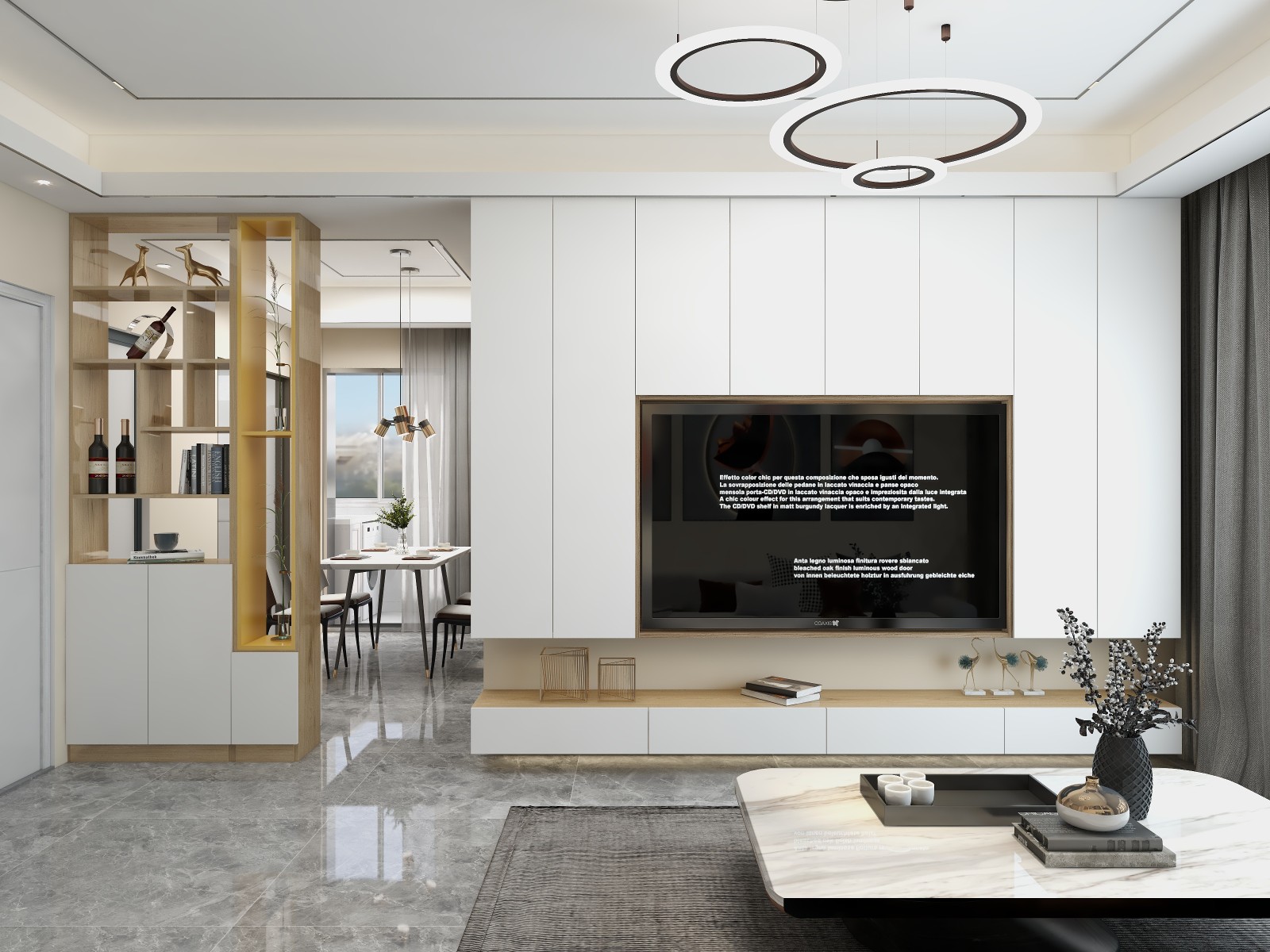 电视背景墙用满墙电视柜代替,能增加大量储物空间
