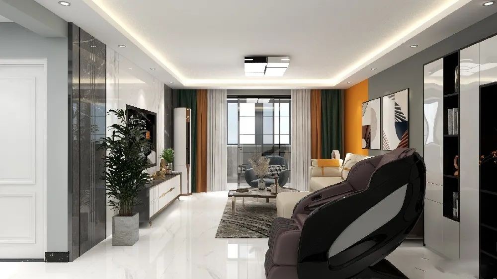 客厅作为居家功能区,将阳台设计为休闲区,同时在客厅摆放了一个按摩椅,可以解除***的疲劳,感受温暖的家。