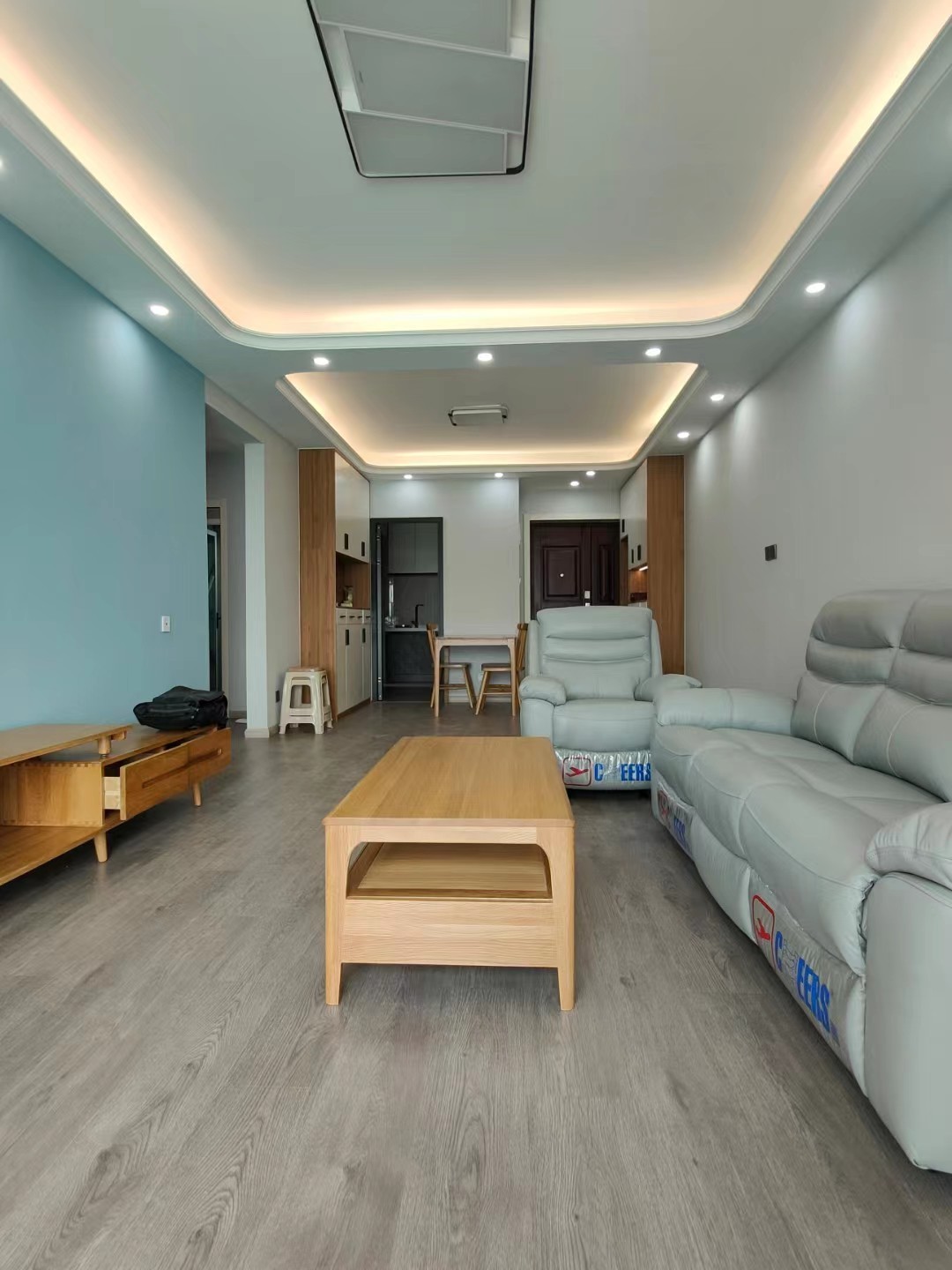 原木色茶几搭配太空舱按摩沙发,赋予了客厅独有的气质