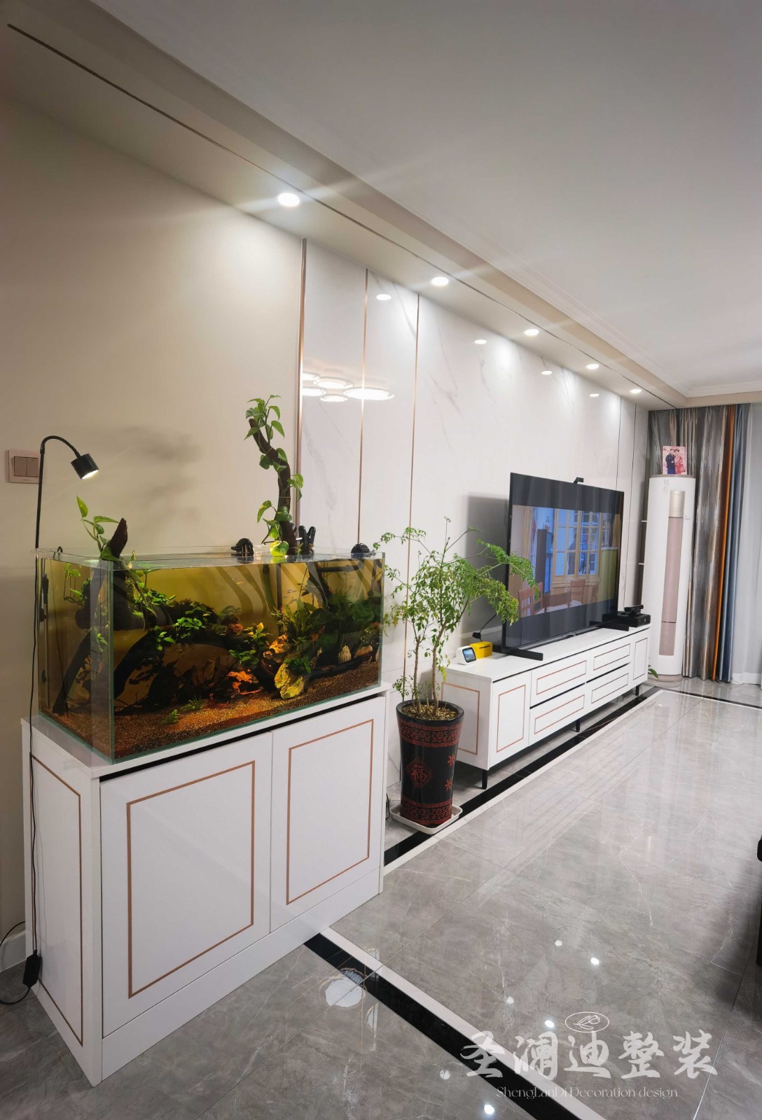 900*1800联纹砖上墙金属线点缀,为空间增添奢华感
