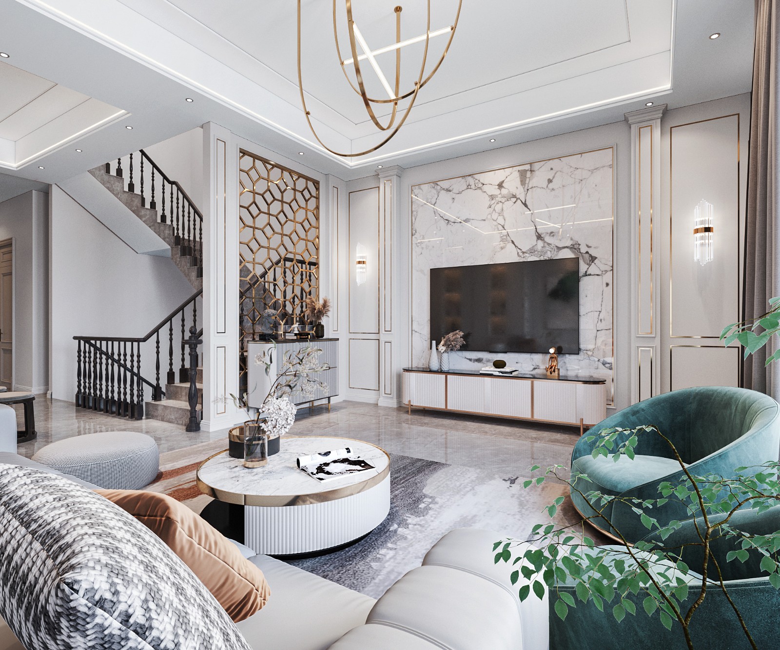 现代轻奢,集优雅、精致于一体,通过金属、丝绒等软装元素来塑造出细腻的质感,搭配淡雅而和谐的色彩,时尚大气,***感十足。