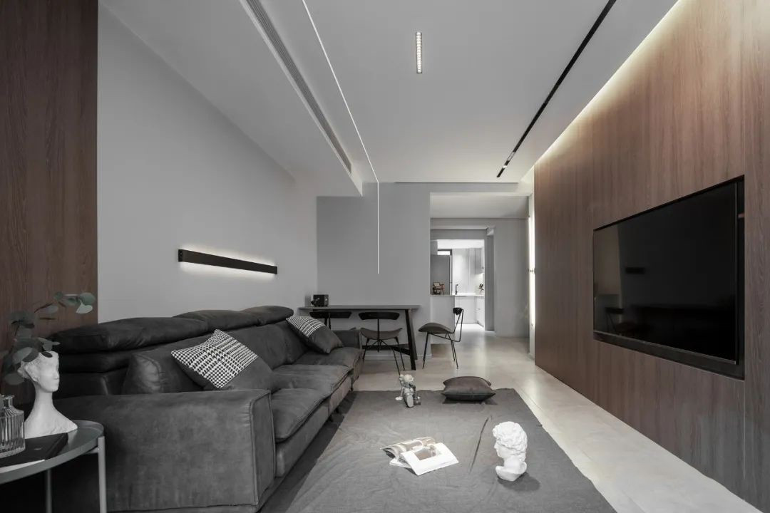这是一套90年代的老房,项目面积80平,造价35万 提高居住的舒适性,对户型进行重新规划设计,增加收纳与实用性就是本案的改造核心,进门玄关用内嵌灯条作为照明,配合悬浮吊顶,让原本只有2.57米的层高,显得不再局促