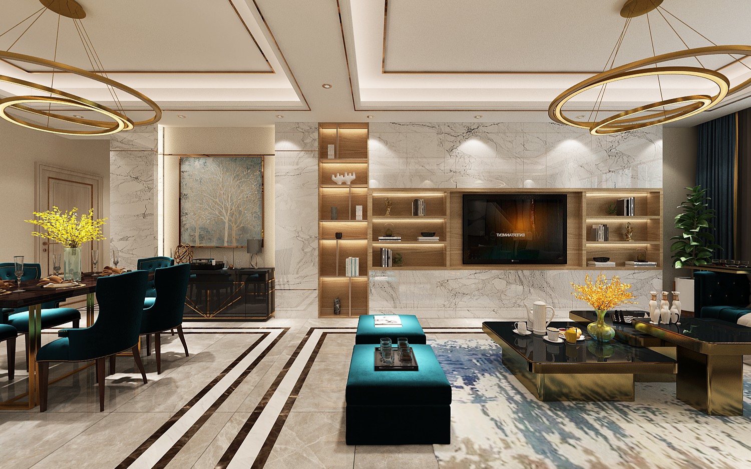 房屋使用面积130平米,风格定位为现代轻奢风格,设计元素多采用现代、时尚、科技感强的构成元素, 色彩颜色对比鲜明,更多的考虑储物空间的设计,多为现代年轻人喜爱。